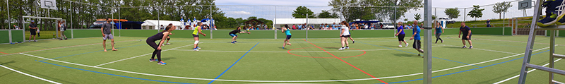 Das Sportfeld kann definitiv nicht genutzt werden, wenn unser Dorf hier ein Dorffest feiert oder vom Reitverein oder Feuerwehrverein hier Turniere ausgetragen werden oder wenn sich Defekte zeigen.